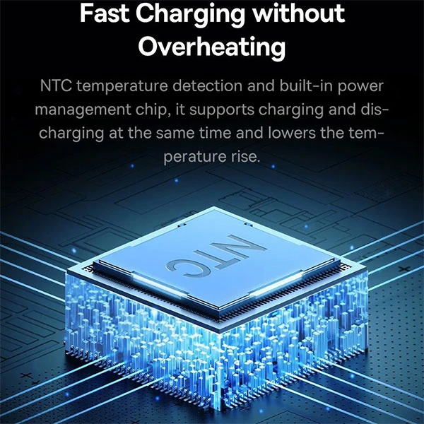یک سنسور دمای NTC در دستگاه تعبیه شده است که همراه با یک تراشه هوشمند، شارژ ایمن را تضمین می کند و از گرمای بیش از حد محافظت می کند. پاوربانک حفاظت چند سطحی در برابر شارژ بیش از حد، اضافه ولتاژ، جریان اضافه، اتصال کوتاه و میدان الکترومغناطیسی را تضمین می کند. شما می توانید دستگاه های مورد نظر خود را بدون نگرانی شارژ کنید!